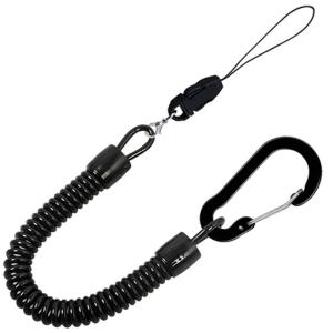 TR-STP001 落下防止ストラップ ブラック カラビナ カールコード 紐パーツ ストラップ (C)