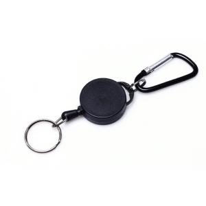 TR-STP006 カラビナ付 リールストラップ ブラック 黒 伸縮自在 鍵 懐中電灯 小さめ 工具 落下 紛失 (C)