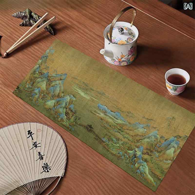 風 風景画 高級感 レトロ アジアンテイスト 茶道用 食卓用 インテリア ロングタイプ 洗える 滑り止め