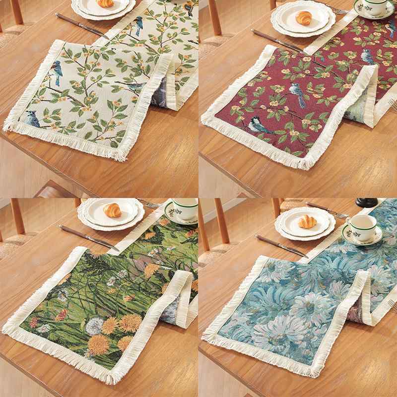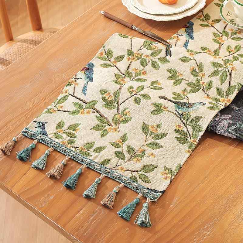 テーブルランナー アメリカンカントリー 高級感 ライトラグジュアリー ジャカード織り 綿麻 滑り止め 耐熱 防塵 長方形 花柄 小鳥柄