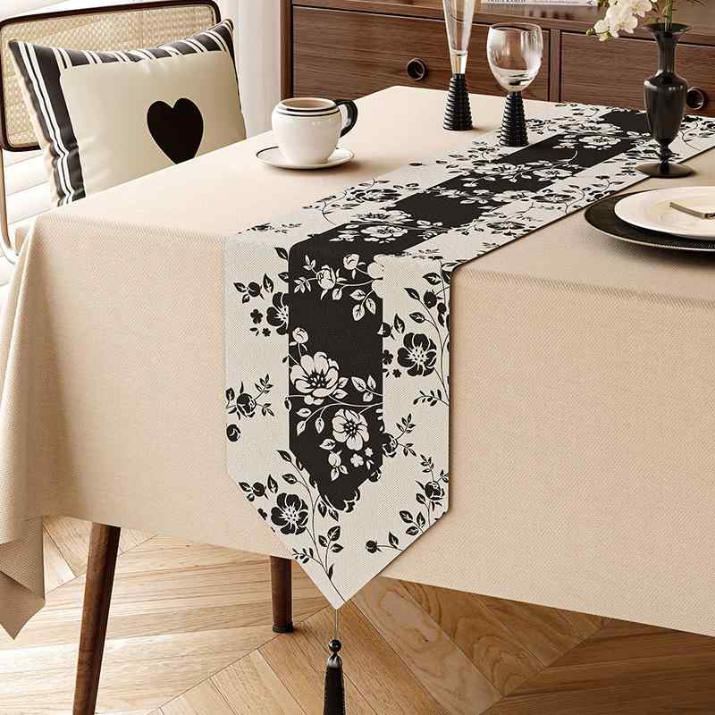テーブルランナー 新中華風 モダン リビング ダイニング 茶室 食卓用 亜麻 リネン 高級感 上品 エレガント