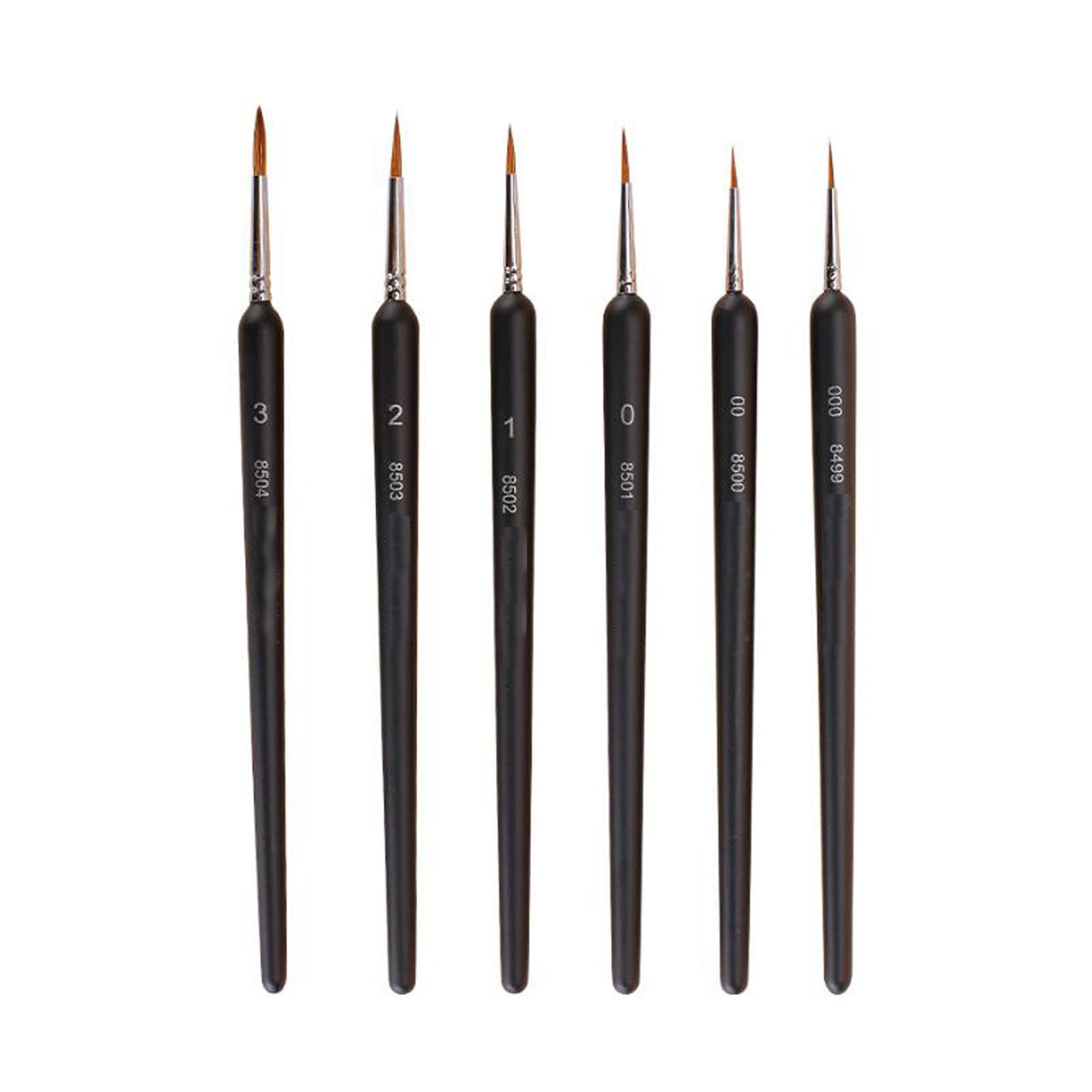 【送料無料】DEVENTORZ 極細 面相筆 6本セット ナイロン筆 プラモデル塗装 水彩画 アクリル画 日本画 フィギュア デザイン ネイル 勾線筆 絵筆 画筆 塗装筆