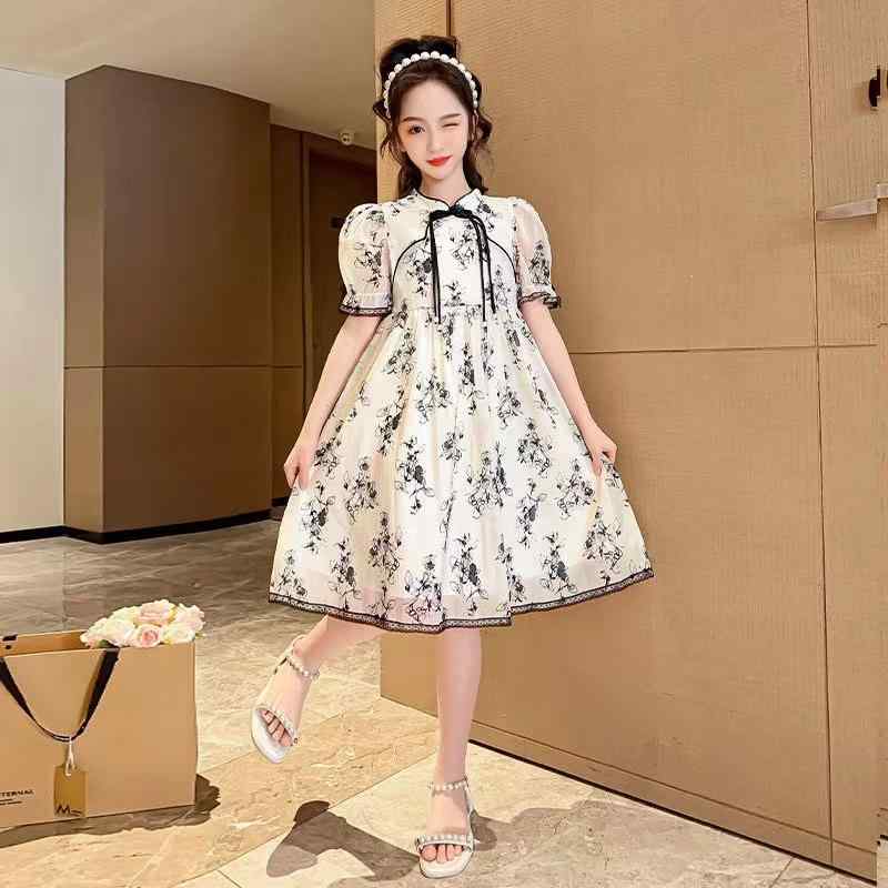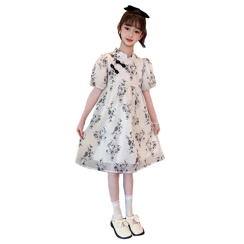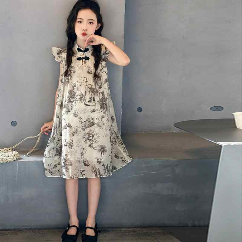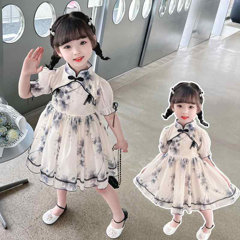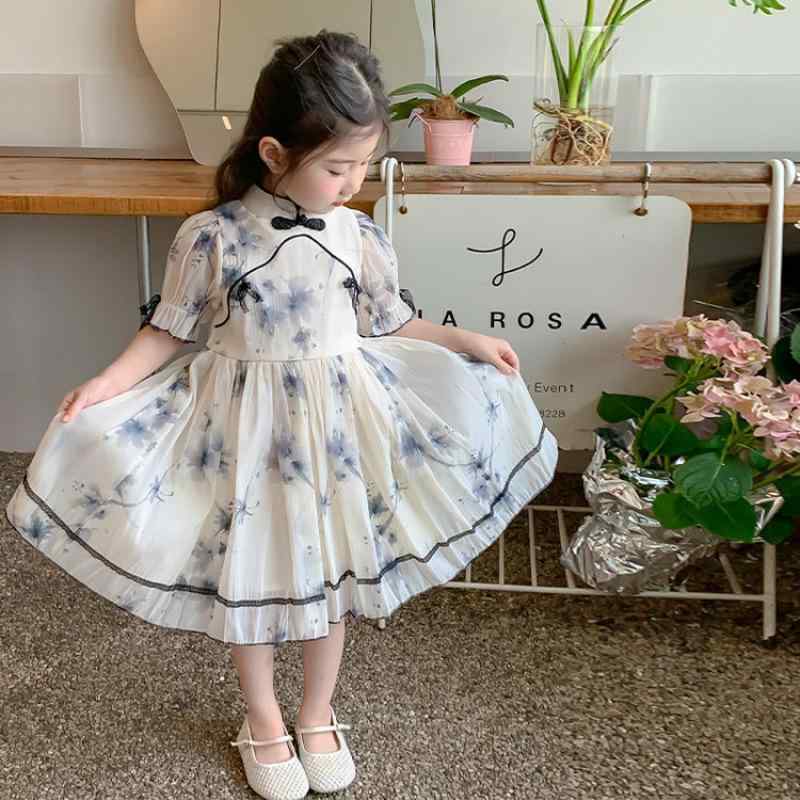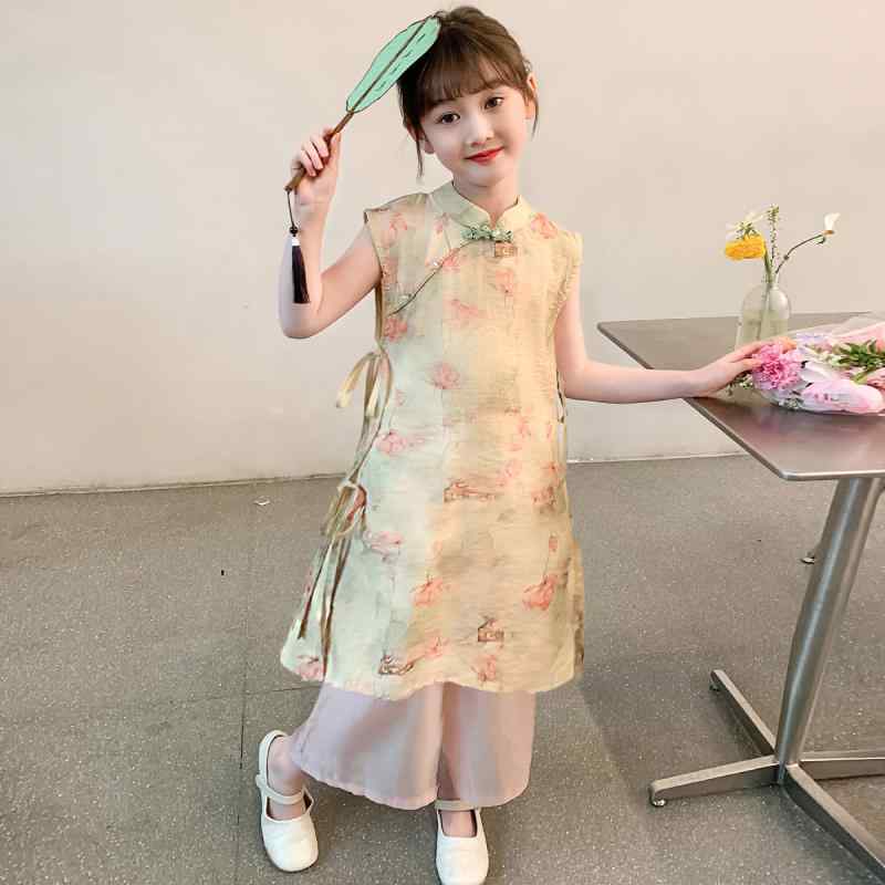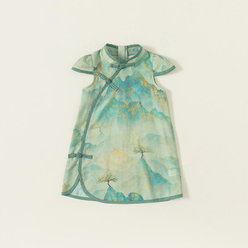 子 キッズ 子供服 夏物 夏服 レトロ 優雅な 上品な 新中華風 民国風 ポリエステル グリーン