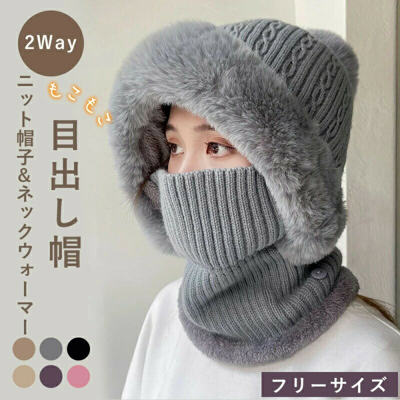 目出し帽 帽子 ネックウォーマー レディース 保温 防寒 防風 もこもこ 裏起毛 2WAY 冬用 暖かい フェイスマスク付き ネックカバー アウトドア 通勤 通学 自転車 スキー 登山