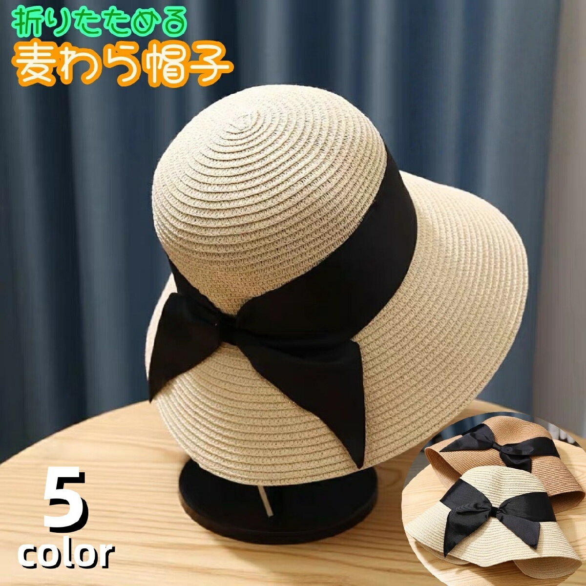 麦わら帽子 レディース フレンチ レトロ エレガント ストローハット つば広 クローシュ型 リゾート ビーチ 旅行 日よけ 春夏 赤 青 オレンジ ブラウン カーキ 黒 白 上品