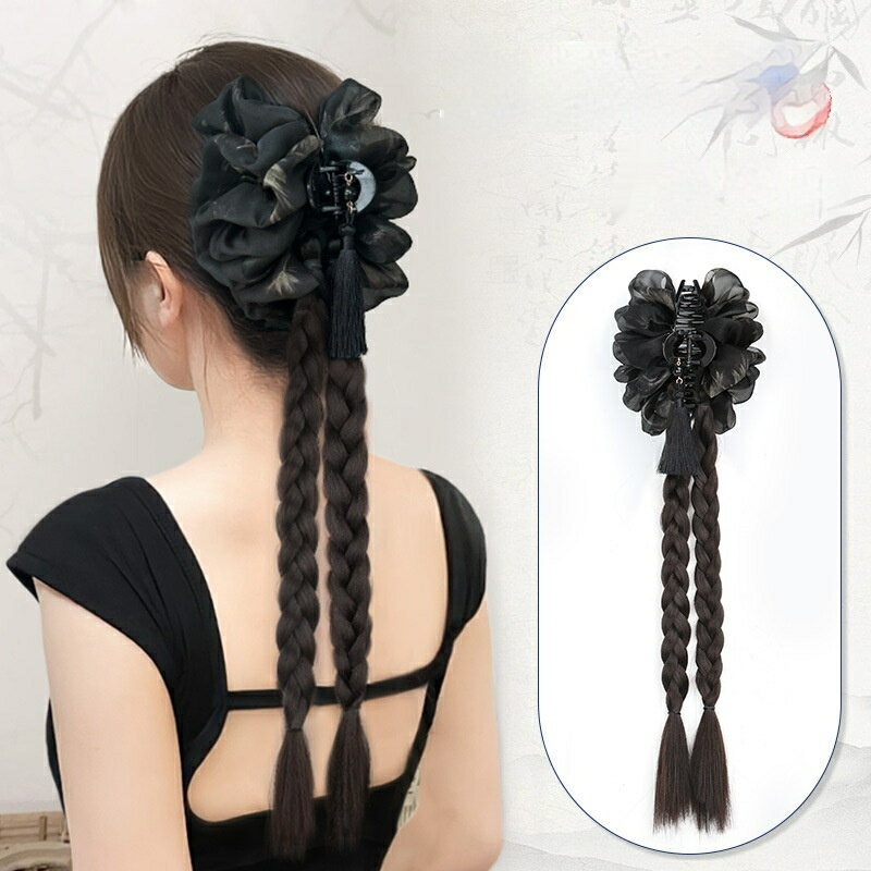 フリンジヘアクリップ ポニーテール 手編み麻花三つ編み ロング編み込み 化学繊維 付け毛 女性用 おしゃれ 2025新作