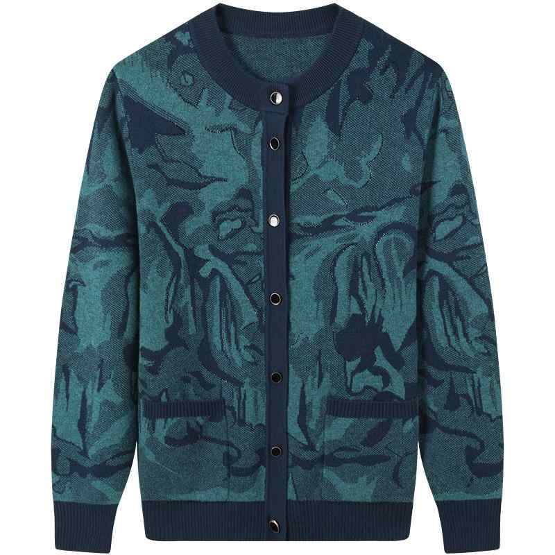 風 ジャガード織り 花柄 ミセス 50代 60代 ママ 上品 ゆったり ルーズシルエット 前開き シングルボタン 丸首 通勤 普段使い 羽織り