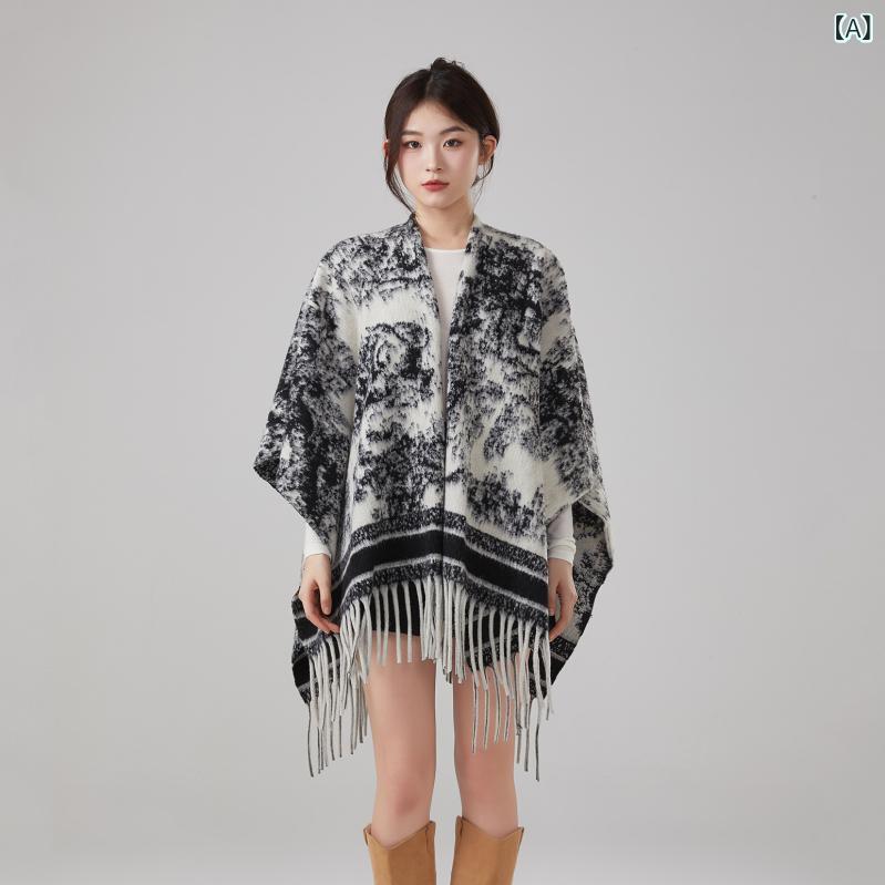 ポンチョ レディース 女性用 秋冬 民族調 レトロ