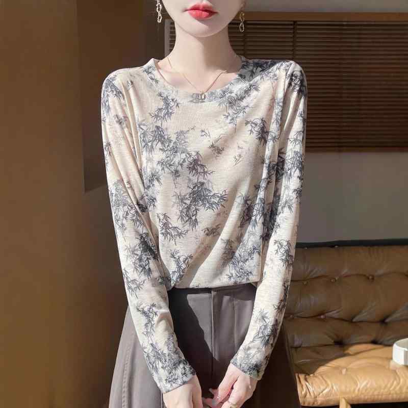 トップス レディース ラウンドネック 長袖 ゆったり Aライン テンセル素材 ポリエステル 伸縮性