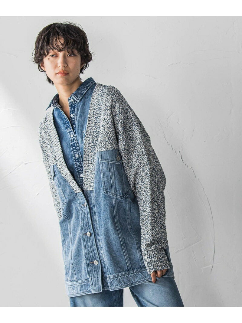 デニムドッキングニットカーディガン≪手洗い可能≫ Droite lautreamont ドロワット・ロートレアモン トップス カーディガン ホワイト【送料無料】[Rakuten Fashion]