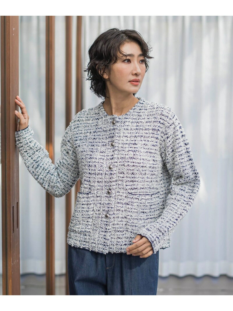 ツイードカーディガン la.f... ラ・エフ トップス カーディガン ネイビー ホワイト【送料無料】[Rakuten Fashion]