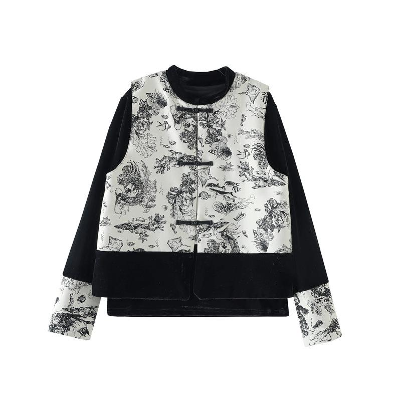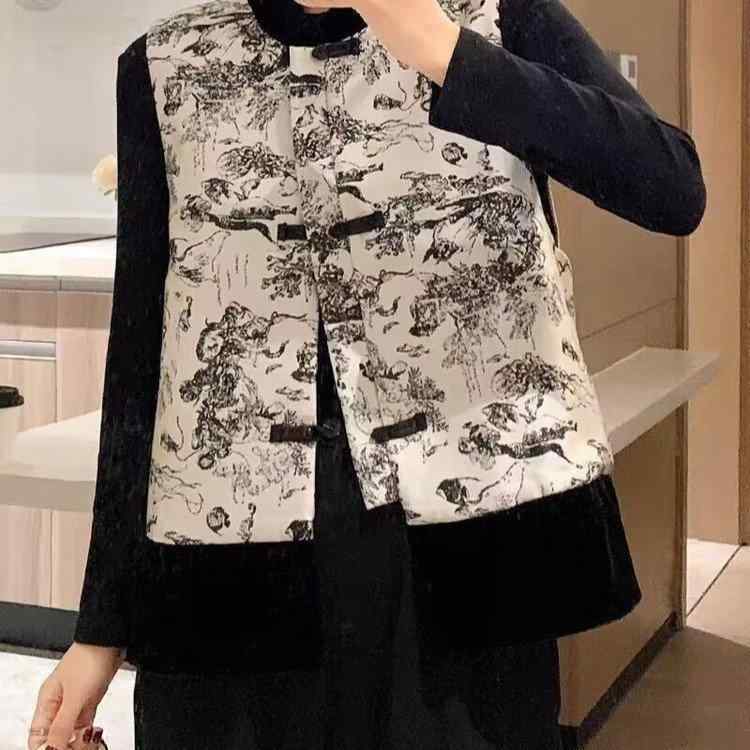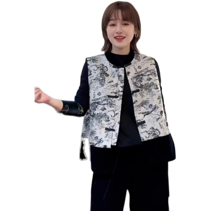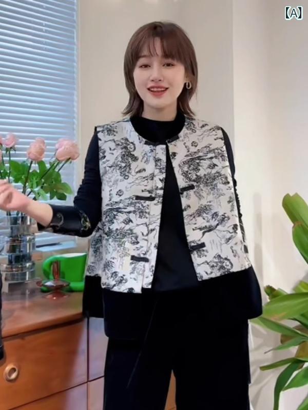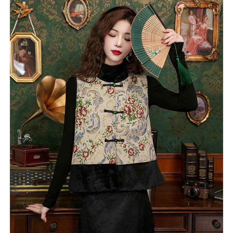 ベスト レディース 女性用 レトロ 中国風 刺繡 チャイナボタン 上品 エレガント ポリエステル 花柄