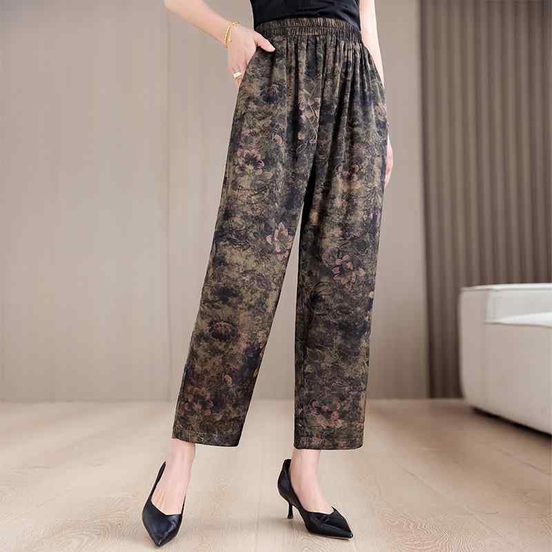 柄 総柄 ストレートパンツ 九分丈 上品 エレガント ポリエステル 微ストレッチ 普段使い デイリー ボトムス 春夏