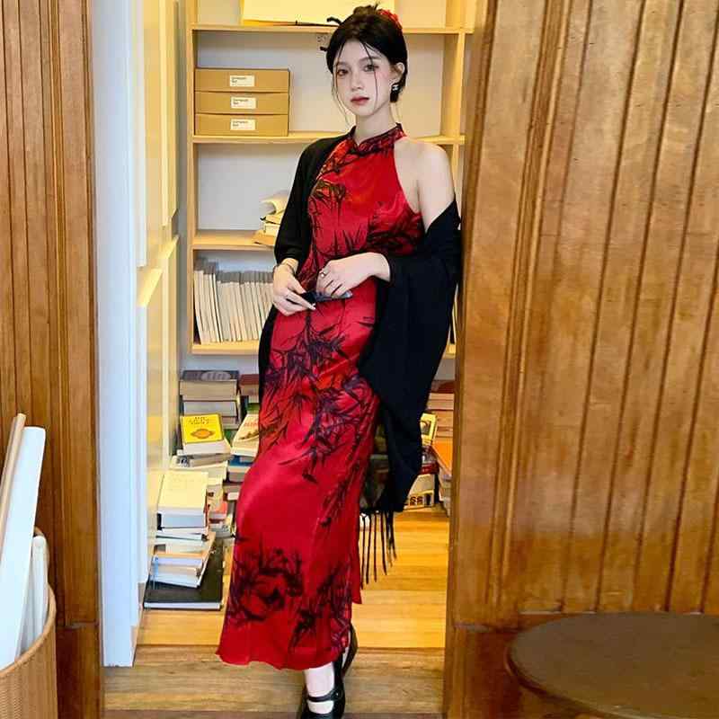 風 竹柄 レトロ ロング丈 エレガント 薄手 涼しい ショール カーディガン 2点セット 春夏 お呼ばれ パーティー リゾート