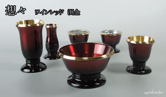 想々 ワインレッド 渕金 3.5寸 6点セット 仏具セット モダン仏具 【 送料無料 富山県高岡製高級仏具】 仏具 花立 灯立 前香炉 線香差 茶湯器 仏器 現代仏具 唐木仏壇 【smtb-TK】