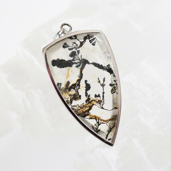デンドリティッククォーツ ペンダントトップ SV(逆トリリアント 銀枠)大粒 特大 ネックレス チャームシルバーフレーム デンドライト 天然石アクセサリー ジュエリー シンプル