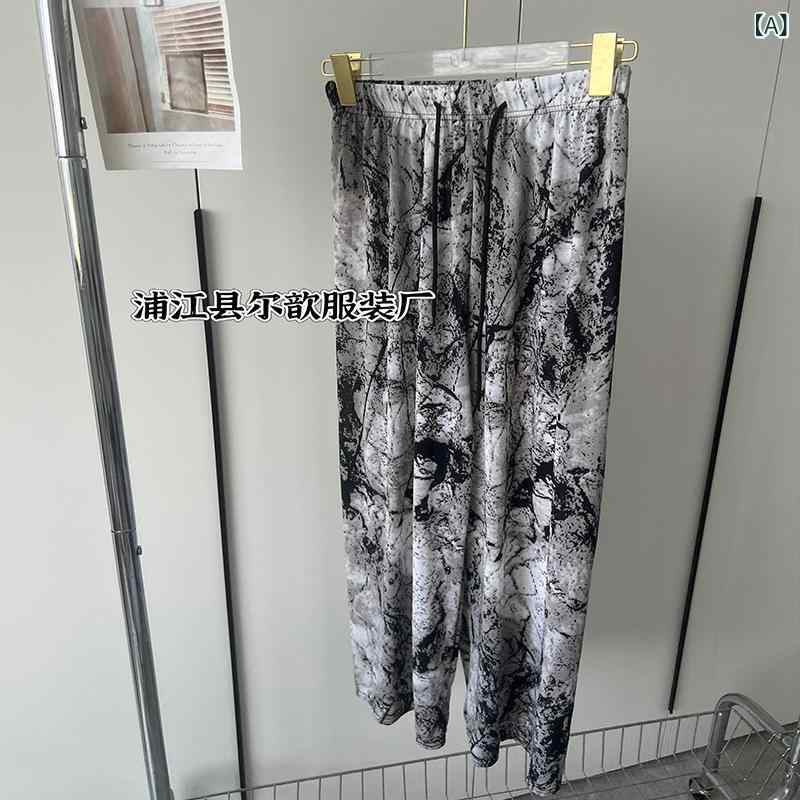 柄 ワイドレッグパンツ ポリエステル リラックス ストレートパンツ イージーパンツ ゆったり カジュアル 薄手 春夏