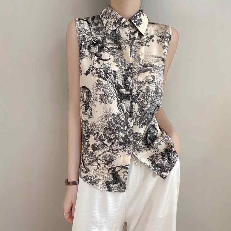 シャツ レディース 春夏 ポロ襟 ノースリーブ ブラウス 開襟 中華風