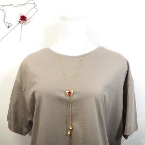 ネックレス ラリエット Y字 ループタイ チャームが上下スライド 春夏 フラワーモチーフ