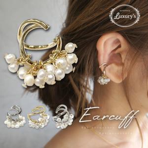 イヤーカフ イヤカフ メタル 2連 淡水パール クリアビーズ かわいい おしゃれ ギフト プレゼント