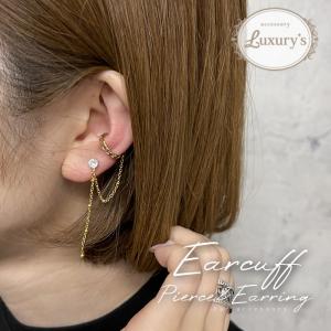 イヤカフ チェーン 片耳用 ピアス イヤリング 樹脂 金属アレルギー キュービック パール おしゃれ かわいいLuxury's