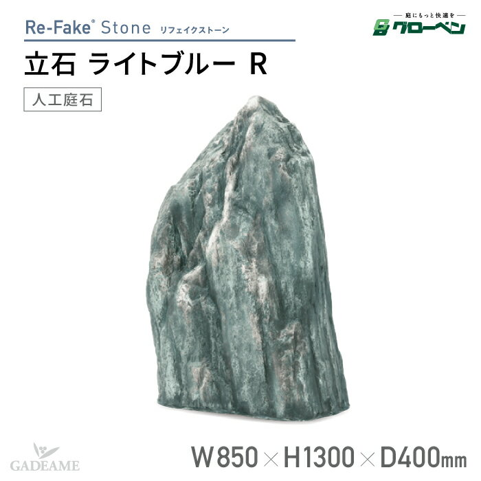 リフェイクストーン【立石Rライトブルー】サイズ:W850×H1300×D400mm、約12kg、商品コード:A60CZ130C ※1個単品部材、内フチタイプ【ドライガーデン 人工庭石 人工石 FRP製庭石 擬石 擬岩 景石 和風庭園 ロックガーデン グローベン社】