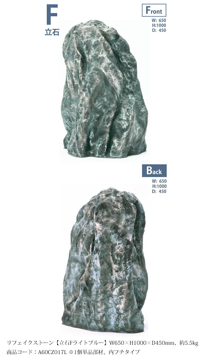 リフェイクストーン【立石Fライトブルー】サイズ:W650×H1000×D450mm、約5.5kg、商品コード:A60CZ017C ※1個単品部材、内フチタイプ【ドライガーデン 人工庭石 人工石 FRP製庭石 擬石 擬岩 景石 和風庭園 ロックガーデン グローベン社】