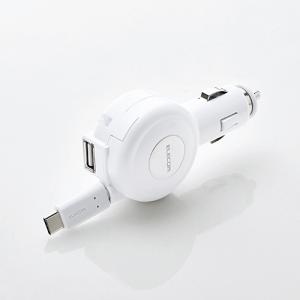 エレコム シガーチャージャー/Type-C/リールタイプ/USBポート付/おまかせ充電/60cm/3A/ホワイト MPA-CCC04WH
