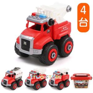 消防車おもちゃ 車おもちゃ 車両おもちゃ 消防車両(4台セット) 組み立て 消防車コレクション 緊急救援車両 創造性を育てる 知育玩具 プレゼント 贈り物