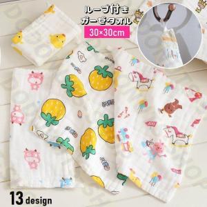 ガーゼタオル ループ付き 単品 30 30cm ガーゼハンカチ フェイスタオル 正方形 ベビー キッズ 赤ちゃん 子供用 ハンドタオル 手拭き 顔拭き