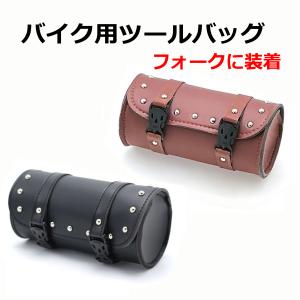 バイク ミニ ツールバッグ 合皮 円筒【 ブラック・ブラウン・ダークブラウン 】/マグナ/ビラーゴ/DS/ツーリング/アメリカン/小物入れ/工具入/フォーク