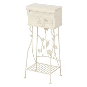 不二貿易 メールボックス アンティーク塗装 葡萄モチーフ ホワイト 38175