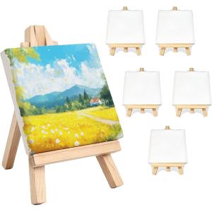 【2組セット】張りキャンバス キャンバス 画材 木枠 装飾 絵画 水彩画 油絵 正方形 画材 油絵10*10cm ミニサイズ イーゼル付き 水彩絵・アクリル絵・油絵