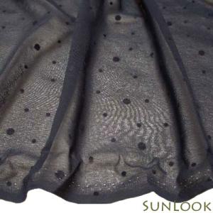 こねこ便可 巾112cm 長さ180cm フロッキー加工水玉シフォンジョーゼット 黒 4432-200