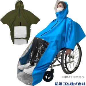 車いすレインはおるっちゃ ポンチョ KS-002 / V0021AG フリーサイズ カーキ(弘進ゴム)