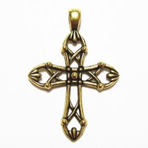 11790-《メタルチャーム・パーツ》 クロス 銀古美 33x19mm 10個/1セット
