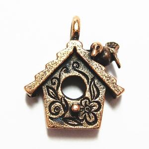4423-【NYピューター】 巣箱 チャーム 銅古美 14mm 5個/1セット