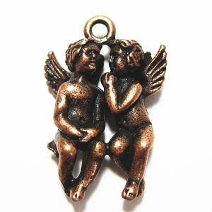 4557-【NYピューター】 天使二人 チャーム 銅古美 19mm 5個/1セット