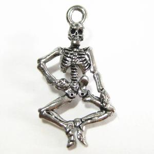4582-【NYピューター】 ガイコツ チャーム 銀古美 20mm 5個/1セット