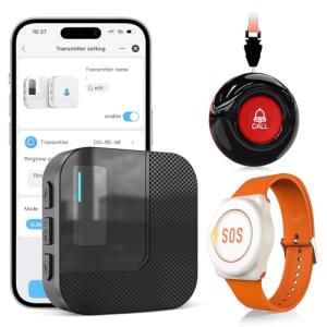 ワイヤレスコール 呼び出しベル SOS緊急コールセット ナースコール 送信機2個 ワイヤレスチャイム 介護ベル ポケットベル 無線 警報 呼び鈴 IP68防水 防塵