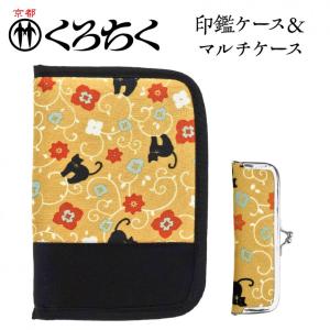 京都 くろちく 印鑑ケース&マルチケース 猫更紗 黒猫 和柄 かわいい 通帳ケース パスケース (3C)