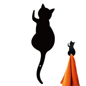 TR-KF002-B 黒猫尻尾フック 3匹セット 両面テープ 耐0.5kg 鍵 小物 玄関 キッチン 台所 フック 猫 ブラック (C)