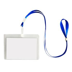 TR-STP019-BL 横向きケース付き 名札 首掛けストラップ 長さ40cm ブルー クリアケース ネームホルダー パスケース (C)