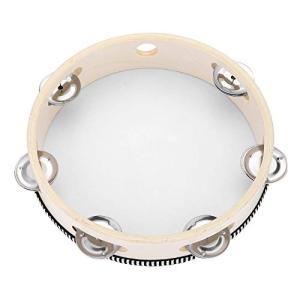 高品質 手持ちタンバリン 1個 演奏楽器 パーカッション 半月型 半円型 二列構造 耐久 20個金属ジングル ブラック