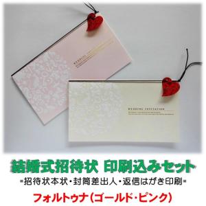 結婚式 招待状 印刷込み(本状・封筒・返信はがき)セット フォルトゥナ(ゴールド・ピンク) 文例お届け 宛名印字対応