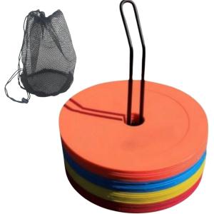 マーカーコーン カラーマーカー 30枚 棒あり サッカー フットサル 練習用 陸上 トレーニングコーン 目印 スポーツ 収納袋付き ((S