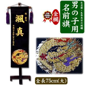 名入れ刺繍 名前旗 京都西陣織を使用 男の子用 名前旗 大 金襴 きんらん 龍 全長75cm台付