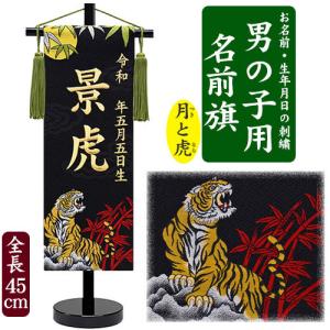 名入れ刺繍 名前旗 男の子用 刺繍絵 龍仁・猛虎 小 全長39cm 銀刺繍 金刺繍 命名旗 名入れ 生年月日 端午の節句 五月人形