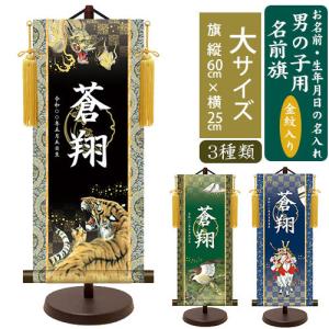 名前旗 男の子 名前旗 金襴名前掛軸 立体風文字 開運龍虎 中55cm 名入れ掛軸 名入れ プリント 生年月日 端午の節句 五月人形 脇飾り 三幸
