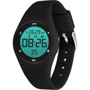 子供 腕時計 活動量計 キッズ デジタル腕時計 男の子 女の子 防水 充電式 スポーツウォッチ 歩数計 距離 アラーム(03-ブラック)
